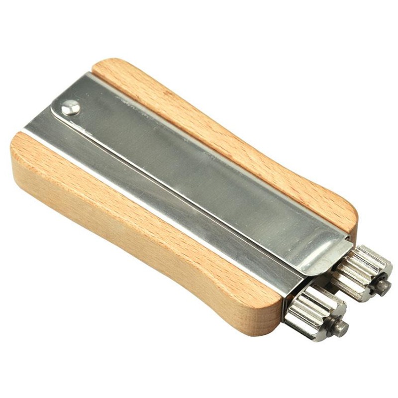 Приспособление состоит из металлических деталей: двух зубчатых колёсиков, фиксаторов, пружины; деревянного корпуса.