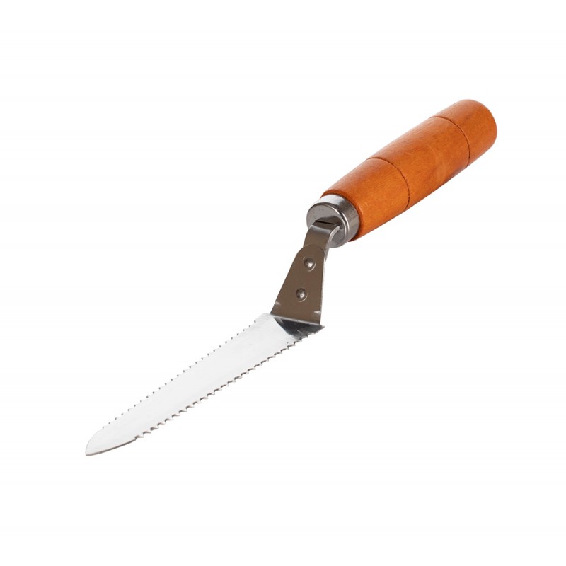 Нож для снятия забруса при распечатывании сотов. Заточка двухсторонняя волнообразная. Длина лезвия - 130 см.