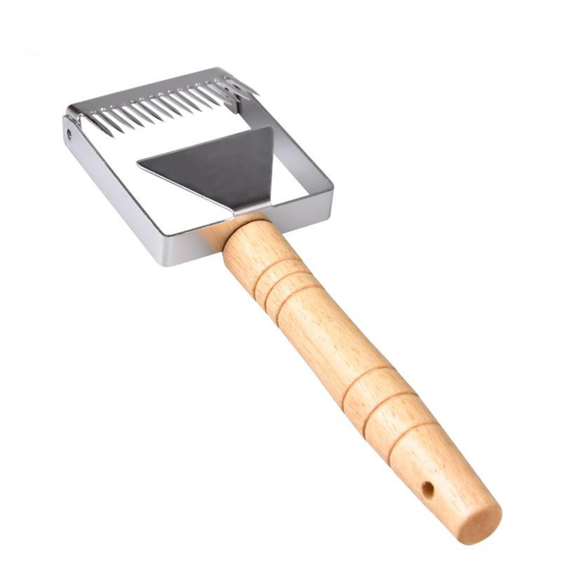 Культиватор изготовлен из пищевой нержавеющей стали и имеет деревянную ручку.
