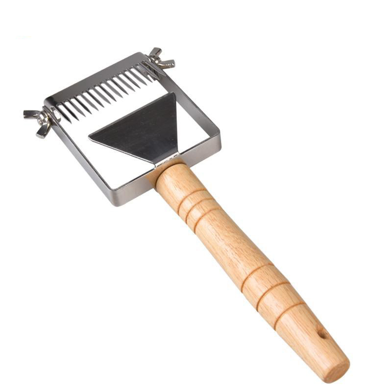Культиватор изготовлен из пищевой нержавеющей стали и имеет деревянную ручку.