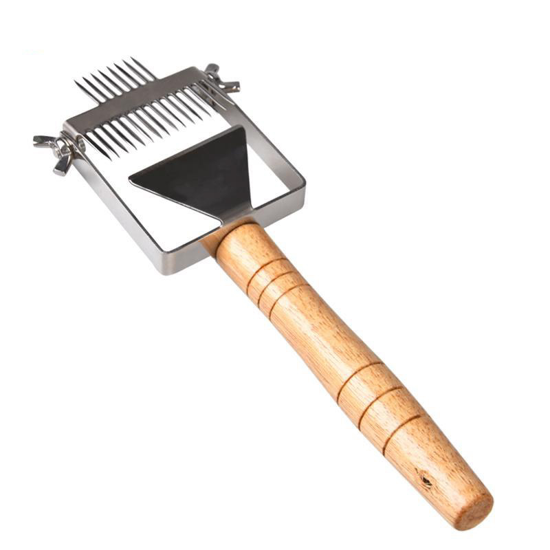 Культиватор изготовлен из пищевой нержавеющей стали имеет двухсторонние иглы и деревянную ручку.