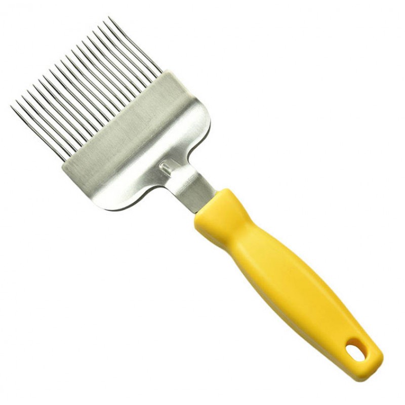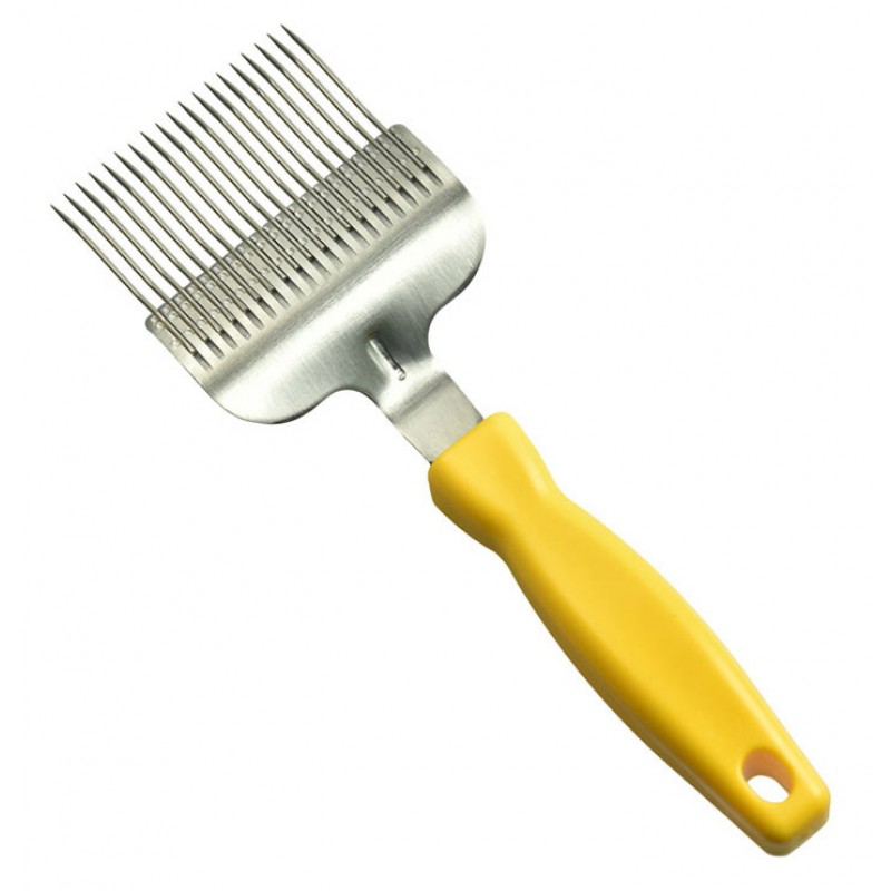 Вилка для распечатки медовых сотов. Эргономичная пластиковая рукоять удобно ложится в руку пчеловода. Основание и остро заточенные прямые иглы выполнены из нержавеющей стали.