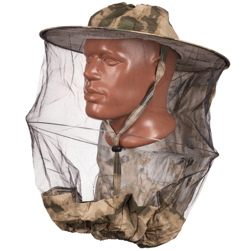 Сетка полуоткрытая, камуфляж. Резинка под подбородок, резинка под кольцо. Ткань - камуфлированная диагональ, бязь. Затылок закрыт тканью. Без клапана. Вся прооверлочена.