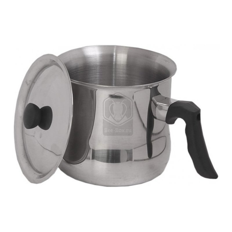 Эта емкость используется для того, чтобы растопить воск и разлить его по формам для свечей. Она имеет двойные стенки, между которыми заливается вода. Принцип водяной бани не позволяет воску дойти до кипения или пригореть. Емкость имеет контрольный свисток. Важно следить за наличием воды в междустенье.