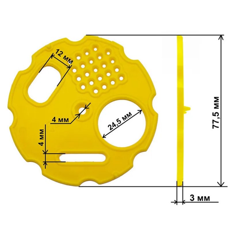 Размеры: диаметр - 78 мм, толщина -3 мм.