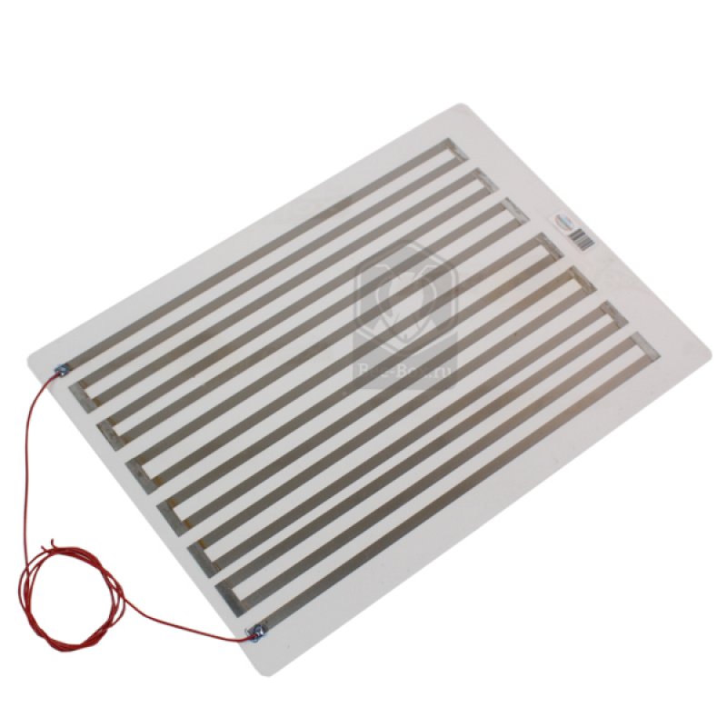 Электрообогреватель пчелиного улья мощностью 24Вт представляет собой плоский нагревательный элемент обладающий рекордно высокой теплоотдачей с единицы поверхности, расположенный между двумя слоями полиэтилен-терефталатной плёнки и проводов длинною 40 см для подключения к источнику напряжения 36В.