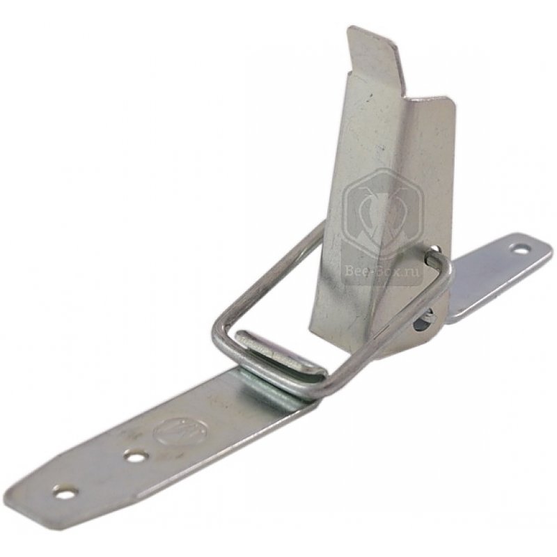 Скреп-защелка служит для фиксации соединения частей улья. Необходим для пчеловодов содержащих кочевые пасеки. Рекомендуется крючок скрепа размещать на верхней части, а сам замок - на нижней. Замки ставятся парами на противоположные стенки улья. Расстояние между частями стяжки надо делать таким, чтобы создавалось небольшое натяжение..