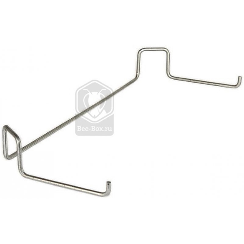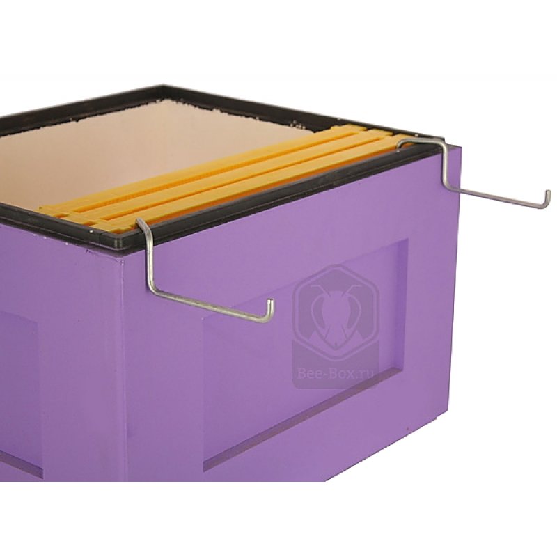 Вынимая из улья первую рамку, не всегда знаешь куда ее поставить, чтобы продолжить осмотр улья. Держатель первой рамки решает эту проблему. Он подходит для всех ульев с толщиной боковой стенки до 36 мм. Несмотря на название, на кронштейне помещаются даже три рамки.