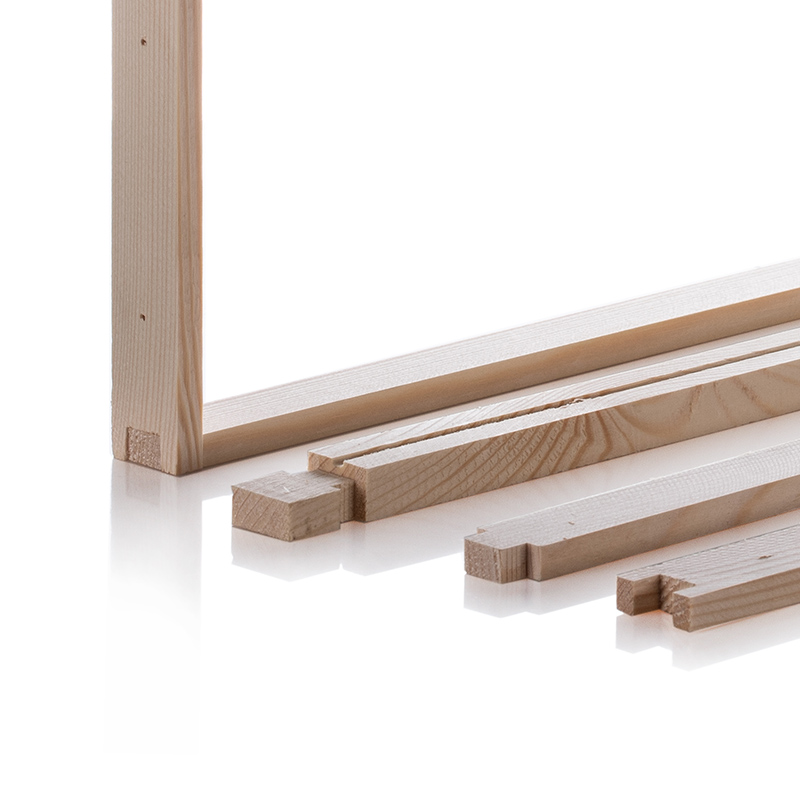 Рамки высокого качества. Паз под вощину в верхней планке. В боковых планках просверлено по 4 отверстия под проволоку.