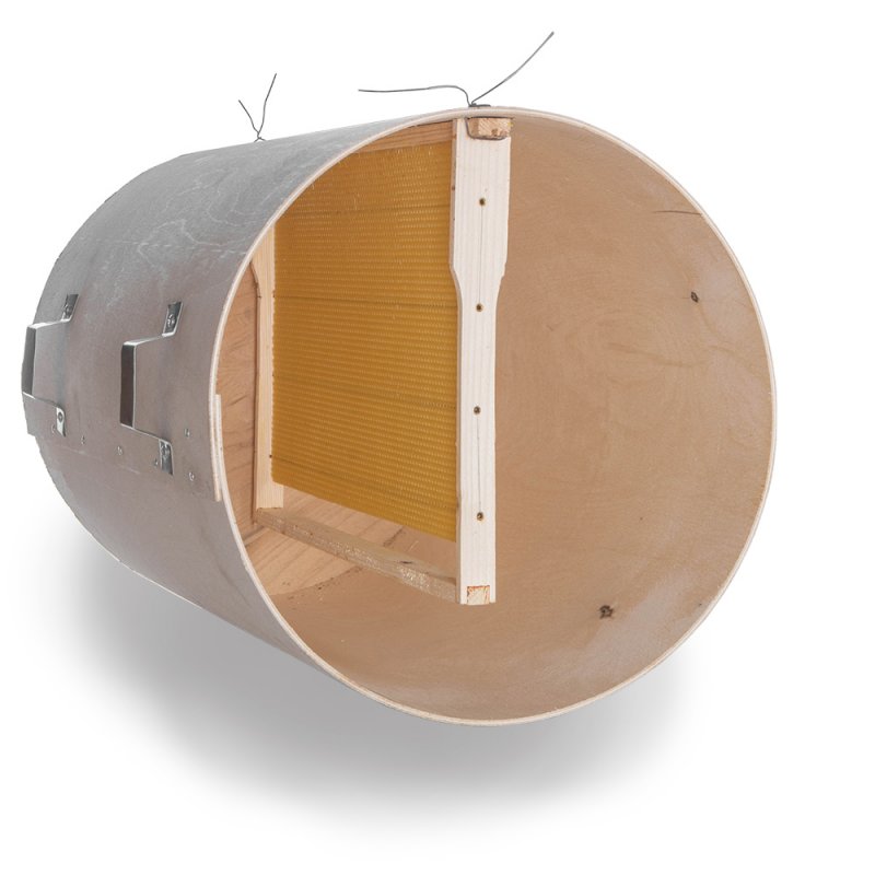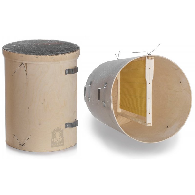 Корпус данной роевни состоит из фанеры толщиной 4 мм. Верхняя крышка роевни покрыта металлической сеткой с ячейкой 3 мм. На корпусе роевни установлены скобы для крепления шеста. Внутрь роевни помещается дадановская рамка (крепится проволокой)