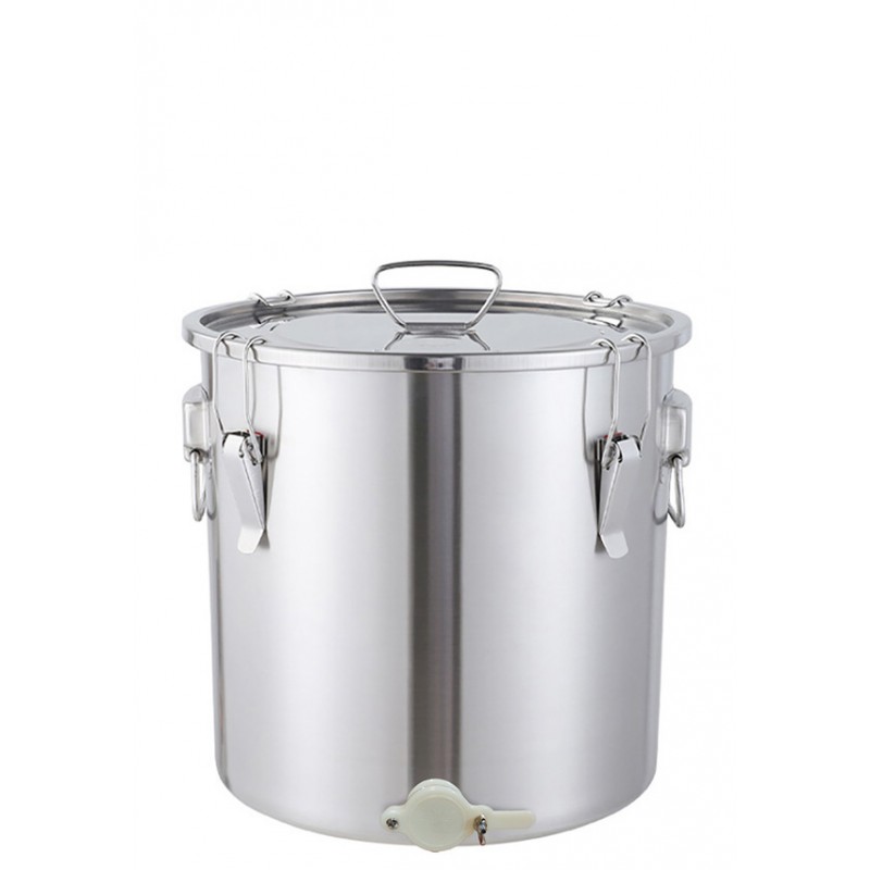 Отстойник на 75 кг меда с крышкой, застежками и краном (нерж. сталь)