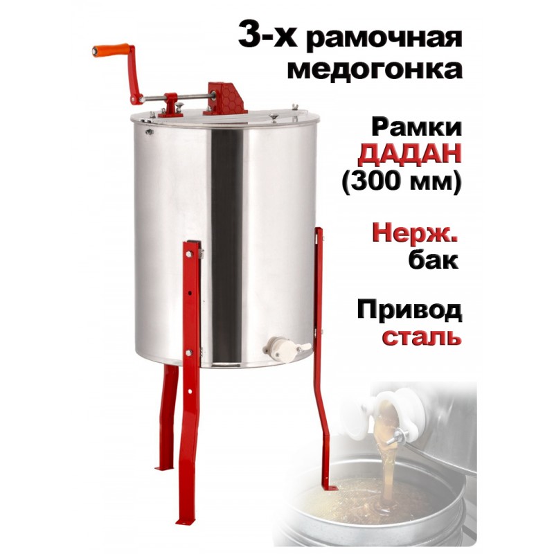 Медогонка 3-х рамочная ручная на ножках, редкутор- сталь (Нерж/Нерж.)