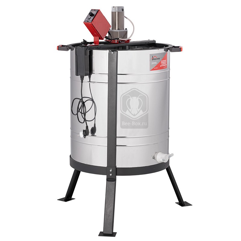 Медогонка 4-х кассетная оборотная. Блок управления РЭК без экрана, с ручными регулировками. Бак этой модели выполнен из нержавеющей стали AISI430. Кассеты - из нержавеющей стали AISI304. Кассеты оборачиваемые. Дно конусообразное. Привод электрический от 12 или 220 Вольт. Регулировка числа оборотов от 0 до 240 об/мин. Вращение в обе стороны. ЕСТЬ РЕВЕРС! Кран - пластик. Съемные ножки поставляются в комплекте.