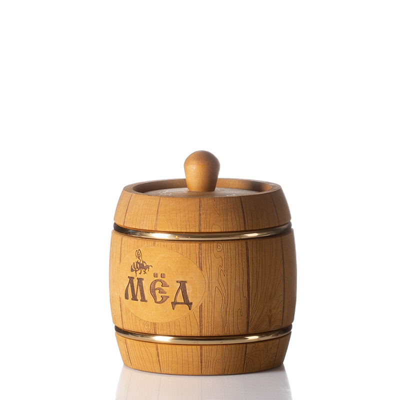 Бочонок выполнен из липы, как наиболее подходящего для хранения меда материала. Внутренняя поверхность пропитана натуральным пчелиным воском. Крышка с "шишечкой" без фиксации. Красивая подарочная емкость, идеальная для хранения меда. Высокое качество исполнения.