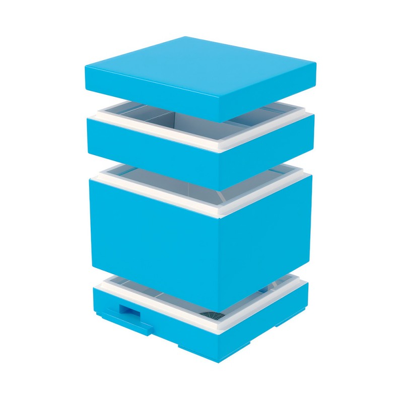 Все его комплектующие изготовлены отдельными элементами, что дает возможность пчеловоду ставить и убирать кормушку и добавлять корпуса.