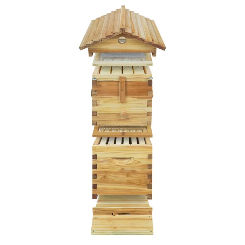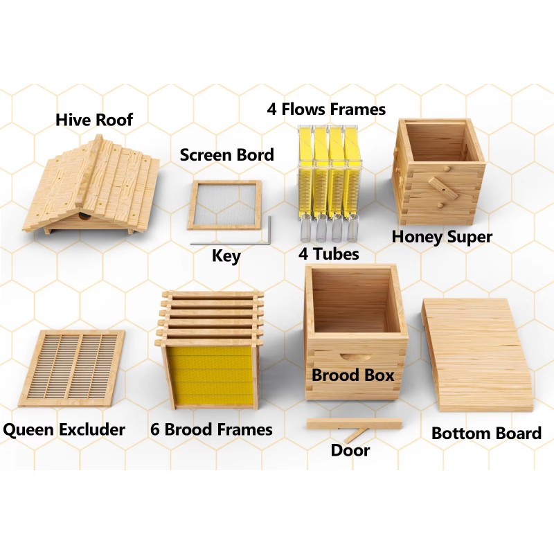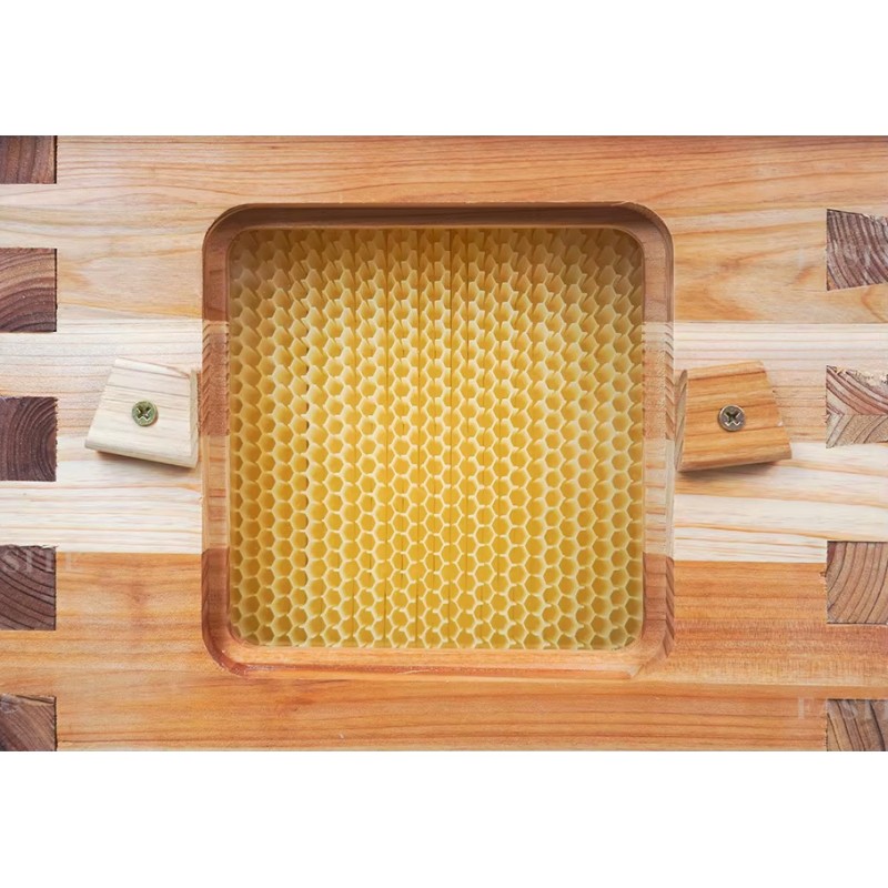 Комплект автоматического потокового улья изготовлен из высококачественной еловой древесины, пропитанной высокотемпературным свареным воском, защищающим его от влаги и паразитов.