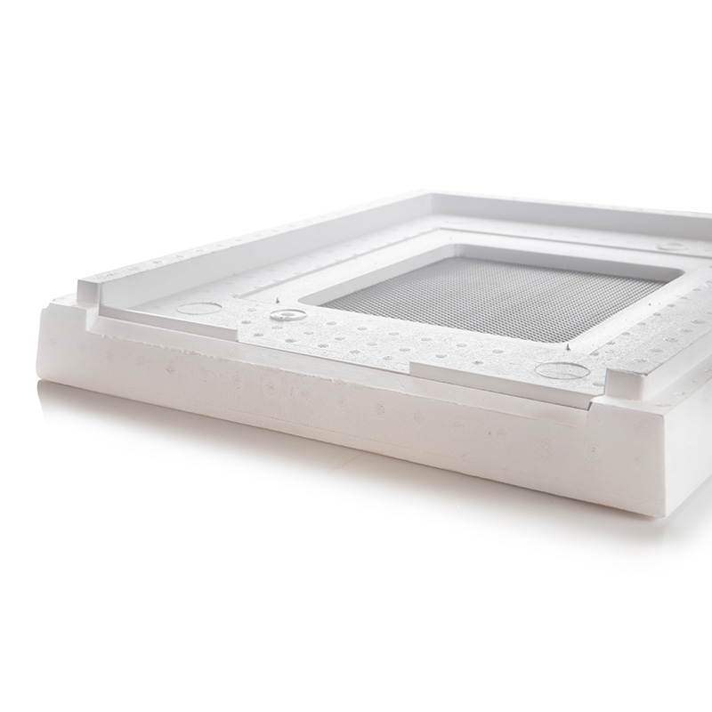 Летковый заградитель поставляется в комплекте и в базовом положении создает леток размером 130х8 мм. Если его перевернуть "вверх ногами", то он перекрывает летковую зону полностью. Заградитель можно убрать, и в этом случае мы получаем леток во всю ширину улья и высотой те же 8 мм.