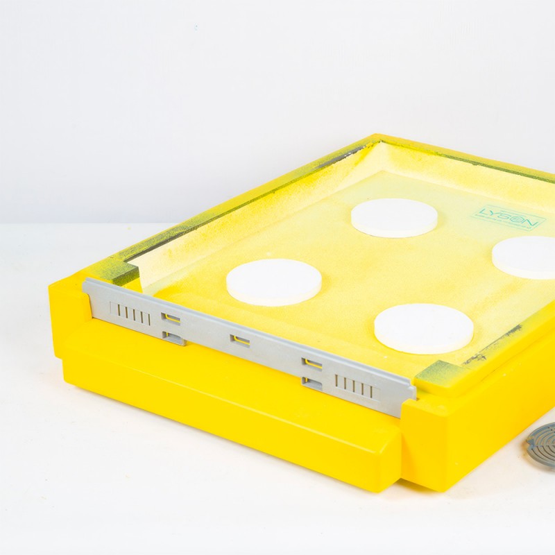 Это традиционное плоское дно улья. Его края, отлитые также с пластиковыми вставками, сконструированы таким образом, чтобы обеспечить расстояние от дна улья до нижнего края рамок равным 2 см. В центральной части дна имеется 4 круглых вентиляционный отверстия, закрытые пластиковыми решетками. В комплекта дна также идут 4 пенополистирольные заглушки для полного закрывания этих отверстий. Между низкой передней частью дна и нижним краем нижнего корпуса образуется широкий основной леток. Летковый заградитель поставляется в комплекте. Снизу дно оборудовано четырьмя пластиковыми ножками, которые, в случае необходимости, позволяют безбоязненно двигать его по плоскости и защищают его при транспортировке. По краям дна имеются удобные ручки для переноски.