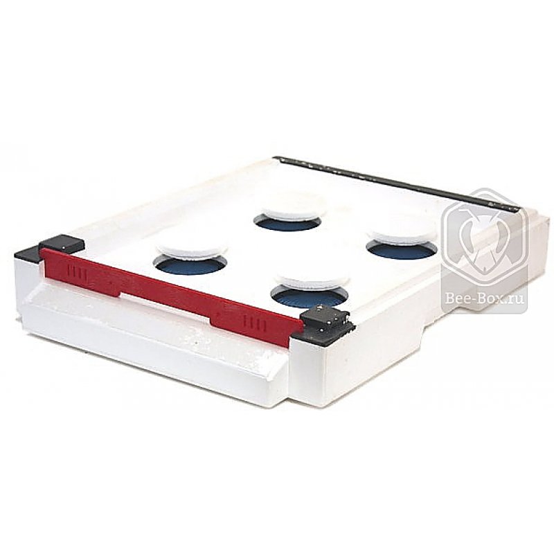 Это традиционное плоское дно улья. Его края, отлитые также с пластиковыми вставками, сконструированы таким образом, чтобы обеспечить расстояние от дна улья до нижнего края рамок равным 2 см. В центральной части дна имеется 4 круглых вентиляционный отверстия, закрытые пластиковыми решетками. В комплекта дна также идут 4 пенополистирольные заглушки для полного закрывания этих отверстий. Между низкой передней частью дна и нижним краем нижнего корпуса образуется широкий основной леток. Нерегулируемый летковый заградитель поставляется в комплекте. Снизу дно оборудовано четырьмя ножками, которые, в случае необходимости, позволяют безбоязненно двигать его по плоскости и защищают его при транспортировке. По краям дна имеются удобные ручки для переноски.