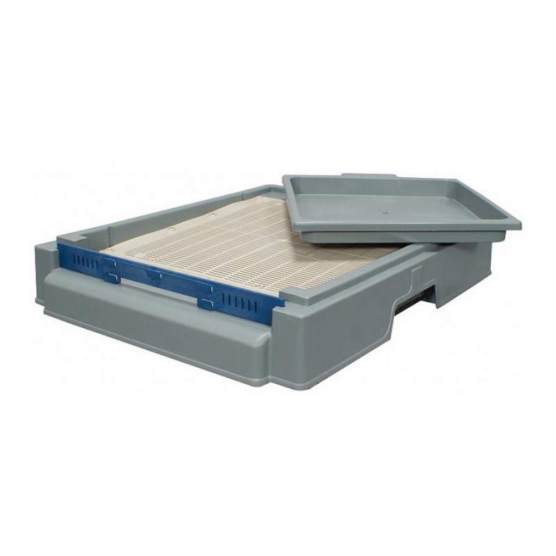 Оно выше стандартного дна на несколько сантиметров. Посередине дно имеет большой проем закрытый сверху противоварроатозной пластиковой решеткой. Снизу в этот проем вставляется заглушка в форме выдвижного лотка, которая служит для утепления улья, оценки заклещеванности семьи во время обработки и для сбора пыльцы. Между низкой передней частью дна и нижним краем нижнего корпуса образуется широкий основной леток. Нерегулируемый летковый заградитель поставляется в комплекте. Снизу дно оборудовано четырьмя пластиковыми ножками, которые, в случае необходимости, позволяют безбоязненно двигать его по плоскости и защищают его при транспортировке. По краям дна имеются удобные ручки для переноски.