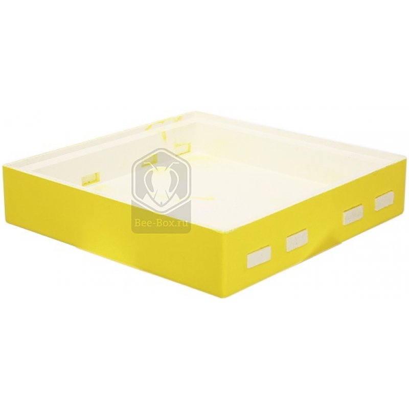 Крыша для 12-ти рамочного улья. Крыша имеет фальцы и большое внутреннее надрамочное пространство, которое может быть использовано для кормления из небольших надрамочных кормушек. Боковые стороны крыши имеют по четыре вентиляционных отверстия с противоположных сторон. Они такого же размера, как летки в корпусах и могут быть закрыты пенополистирольными заглушками, которые поставляются в комплекте. По внешним размерам крыша соответствует корпусу и не выступает за его пределы.