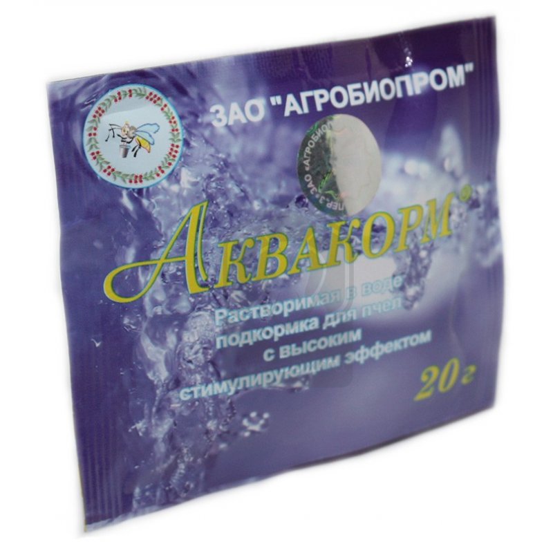 Аквакорм применяют для поения пчел в весенний и летне-осенний периоды в момент наращивания силы семей и подготовки их к зимовке. Корм добавляют в поилку с водой из расчета 20 г на 10 л воды.