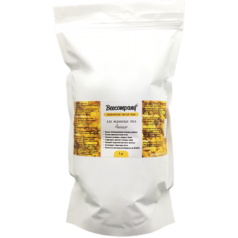 Это высокобелковый корм, разработанный в помощь пчелам и пчеловодам. Корм помогает поддерживать активность пчелиных семей, увеличивая популяцию, что приводит к лучшему опылению культур, повышению нектаропродуктивности и урожаю меда.