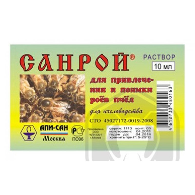 Санрой (раствор) обладает выраженным привлекающим действием для медоносных пчёл.