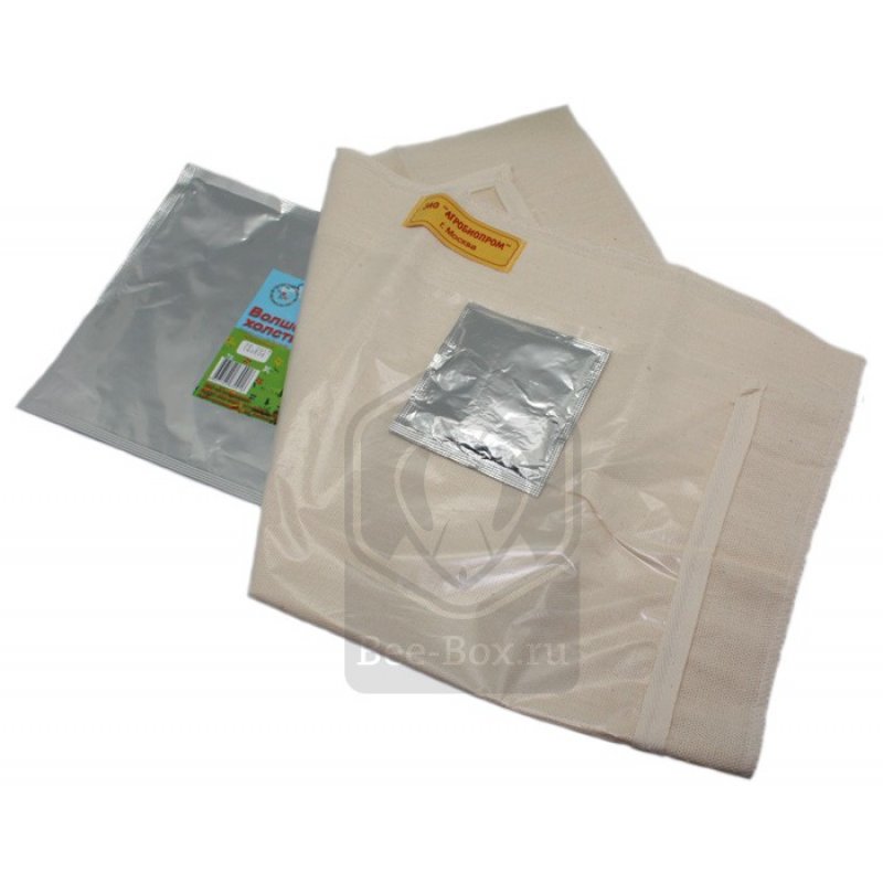 Хлопчатобумажный холстик, пропитанный эфирными маслами и флакон с комплексом из препаратов подавляющих агрессивность пчёл.