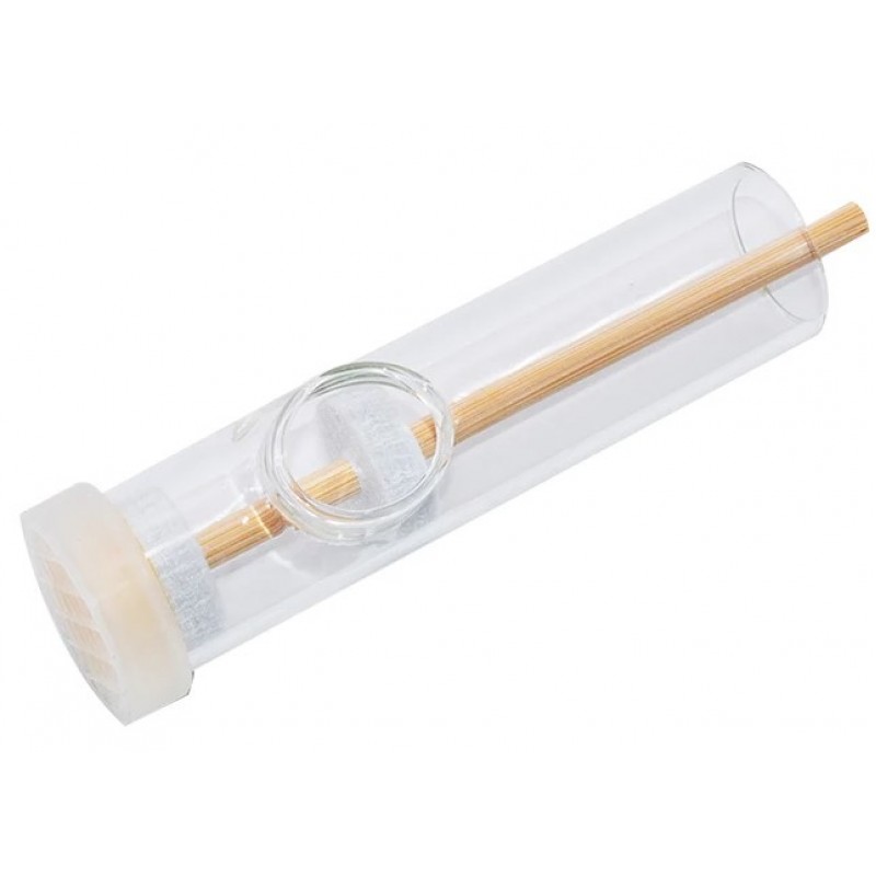 Поршень состоит из двух компонентов: стеклянной колбы, закрытой с одной стороны пластиковой решеткой, и деревянного поршня с поролоновой подушечкой, чтобы не повредить пчелиную матку.
