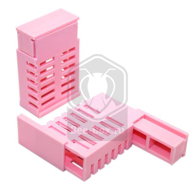 Клеточка для матки пластмассовая со сдвигающимся отделением корма. Используется для временного содержания пчелиной матки или маточника, при подсадке матки или изоляции маточника при постановке в улей с пчелами, а также для пересылки матки по почте.