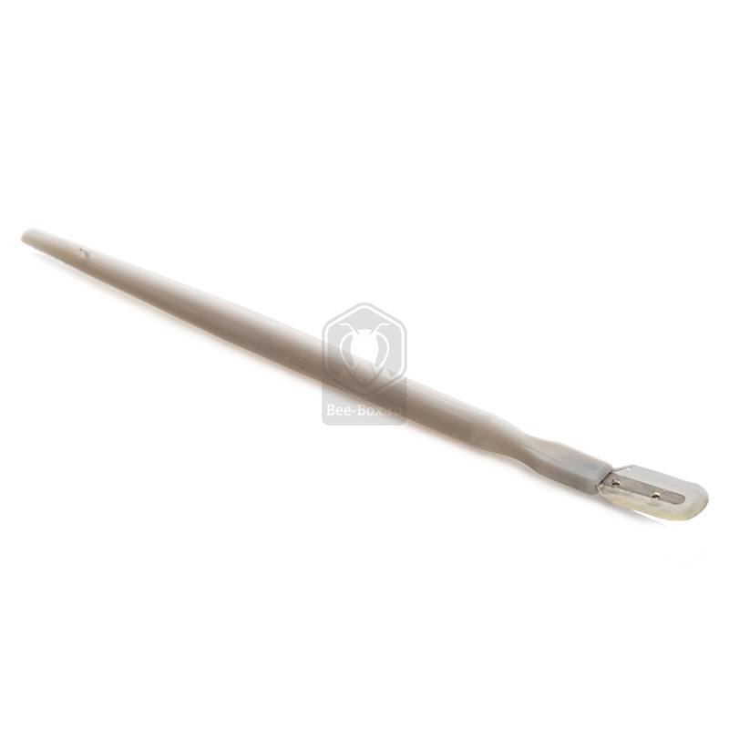 Специальный шпатель для сбора пчелиного маточного молочка. Быстросъемный наконечник в виде лопатки из мягкого силикона. Для придания жесткости внутри металлическая вставка. Удобная пластиковая ручка. Легко разбирается для мытья, обработки и сушки.